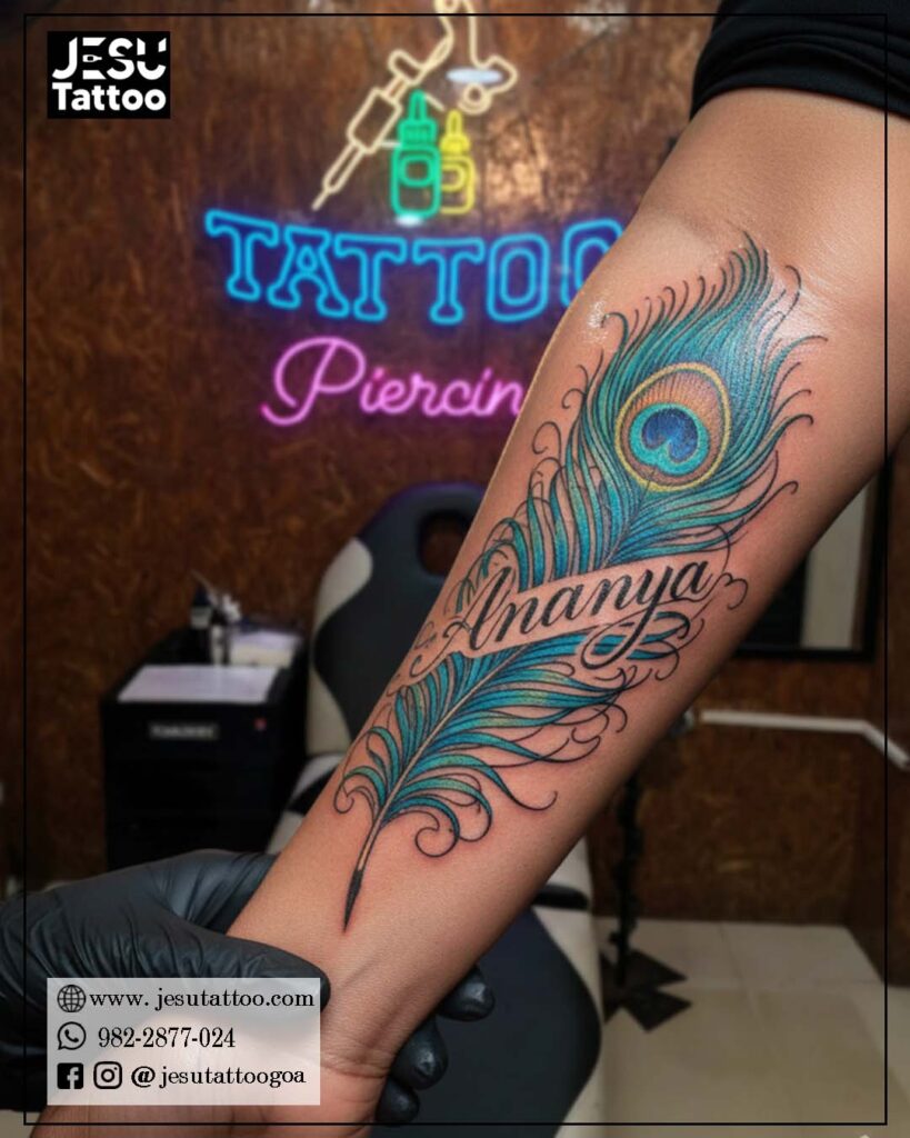 Goa Peacock Feather Tattoo | Jesu Tattoo Studio’s Name Tattoo Designs